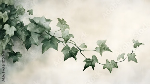 © เอกสิทธิ์ นูนทะธรรม, Fototapeta premium Delicate Watercolor Painted Ivy Leaves on Textured Paper Background