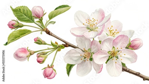Fototapeta premium Delicate Watercolor Painting of Apple Blossoms on a Branch with Buds