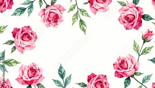 Fototapeta premium Delicate watercolor roses & leaves, repeating pattern, wallpaper, background