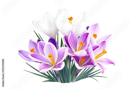 © Tanapong, Naklejka premium Delicate watercolor white & purple crocuses and lilies, spring floral clip art, pretty, isolated