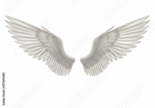 © stock.metket.com, Naklejka premium Delicate white angel wings spread wide against a bright, clean background for a heavenly effect