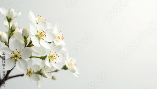 Fototapeta premium Delicate white blossoms against a pure white backdrop , blossom, closeup, bloom