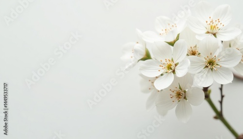 Fototapeta premium Delicate white blossoms against a pure white backdrop , isolated, pure