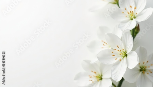 © Anulak, Obraz premium Delicate white blossoms against a pure white backdrop , peaceful, image, clean