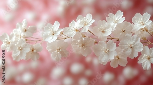 Fototapeta premium Delicate White Blossoms Against a Soft Pink Background