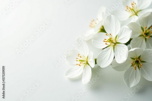 © suchetpong, Obraz premium Delicate white blossoms against pure white backdrop, background, soft, bloom