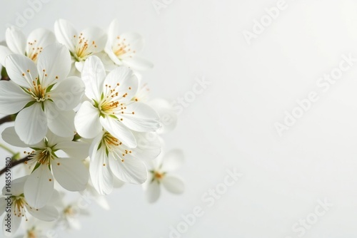 Fototapeta premium Delicate white blossoms against pure white backdrop, clean, aesthetic