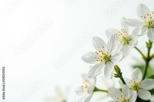 © Sarayuth, Obraz premium Delicate white blossoms against pure white backdrop, close-up, freshness