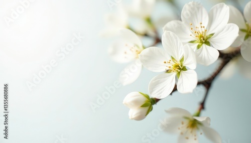 © anulak, Obraz premium Delicate white blossoms against pure white backdrop, isolated, bright