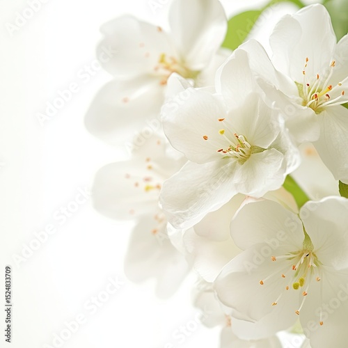 Obraz premium Delicate white blossoms cluster closely, showcasing intricate details against...