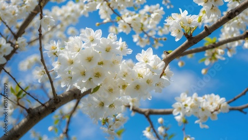 © AImmersive Imagery, Obraz premium Delicate white blossoms embellish tree branches, highlighting the beauty of nature.