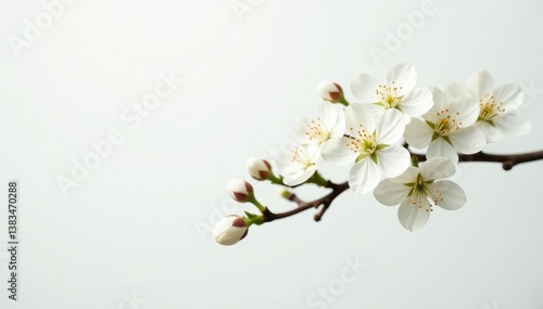 © Prapasarabhron, Fototapeta premium Delicate white blossoms on a stark white background, soft, white flowers