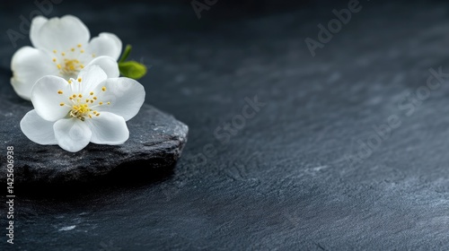 Fototapeta premium Delicate white blossoms on dark stone