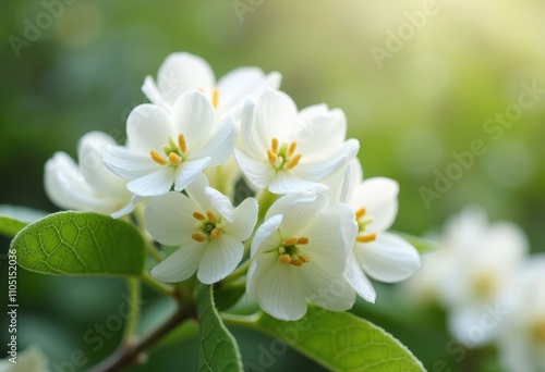 © LTh, Fototapeta premium Delicate White Blossoms on Green Branch.