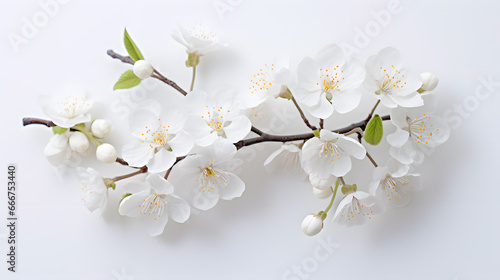 Obraz premium Delicate White Cherry Blossom Branch on Light Background