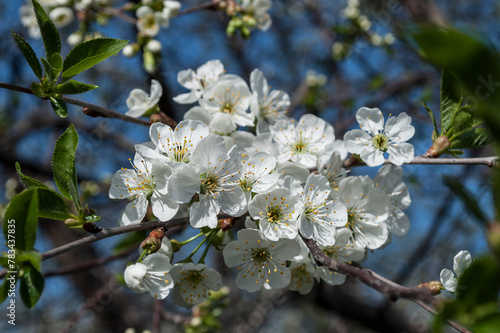 © svetlana177, Fototapeta premium delicate white cherry blossom flowers
