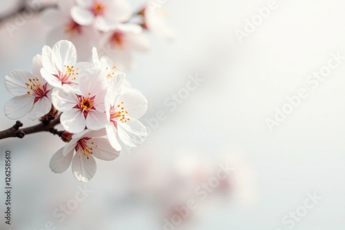 Fototapeta premium Delicate white cherry blossoms, soft light, pure white backdrop , beauty, white, spring