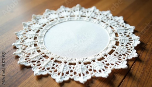 Obraz premium Delicate white crocheted lace napkin, doily style, bridal, irish crochet