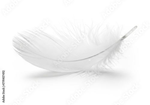 Obraz premium Delicate white down feather rests horizontally on a bright surface