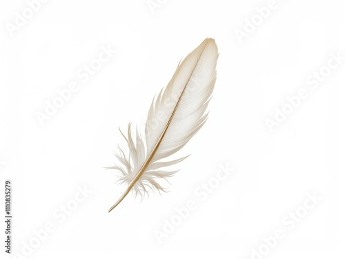 © Friedbert, Fototapeta premium Delicate White Feather Against Minimalist White Background