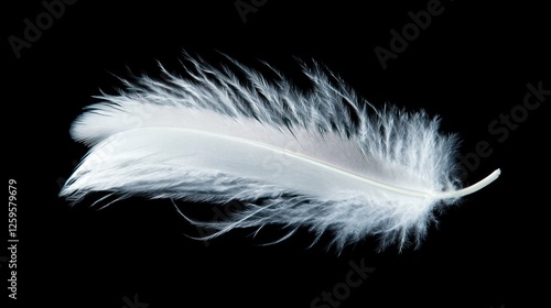 Obraz premium Delicate white feather floating against a black background