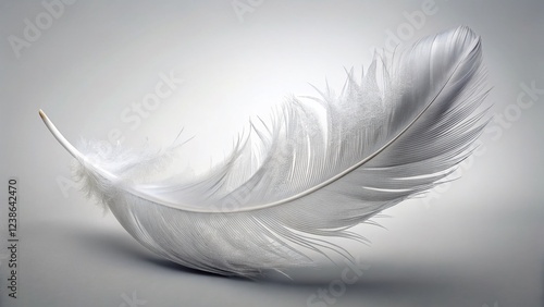 Obraz premium Delicate White Feather Floating against a Pristine White Background