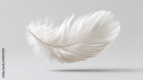 © AT10, Obraz premium Delicate white feather floating gracefully in air