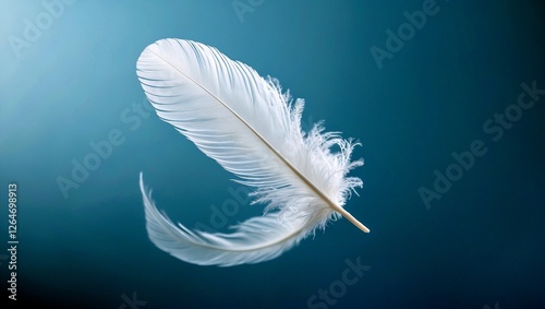 Obraz premium Delicate white feather floating on calm blue background