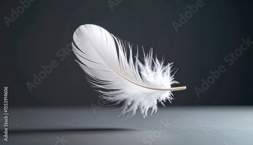 © Sri, Obraz premium Delicate White Feather In Flight Against Dark Background