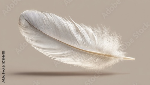 © Tarakan, Obraz premium Delicate white feather in mid-flight