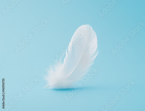 © Adriyanca, Fototapeta premium Delicate white feather on a light blue background