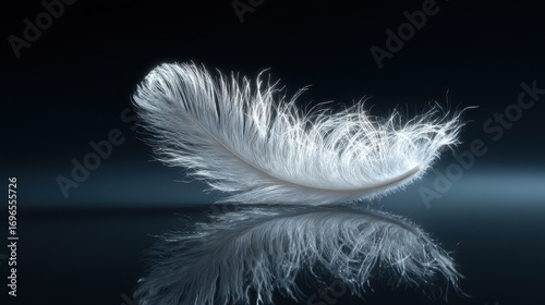 © BlackCoral, Obraz premium Delicate White Feather Reflecting on Dark Surface
