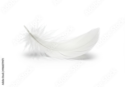 Obraz premium Delicate white feather softly resting on a clean white surface