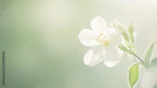 Fototapeta premium Delicate white flower against soft, blurred green background evo