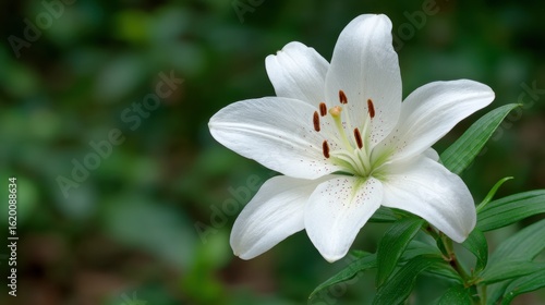 Fototapeta premium Delicate White Flower Blooming in a Green Garden with Soft Natural Light
