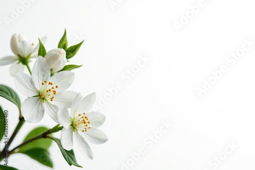 Obraz premium Delicate white flower blossoms against a stark white background , organic,...
