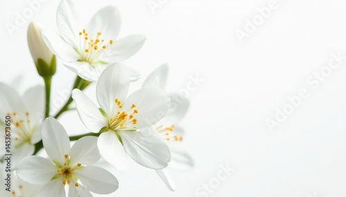 © Chanchai, Obraz premium Delicate white flower blossoms against pure white backdrop, art, summer