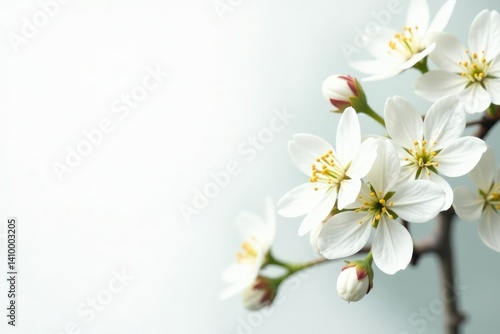 © Supharak wonginyoo, Obraz premium Delicate white flower blossoms against pure white backdrop, texture, spring, detail