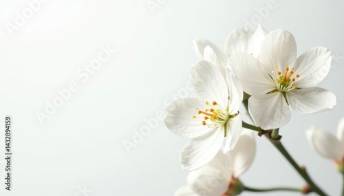 © Sathaporn Buarabut, Obraz premium Delicate white flower blossoms against pure white background, botany, garden