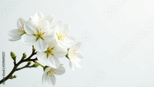 © PHOUVONG , Obraz premium Delicate white flower blossoms against pure white background, plantlife, elegance