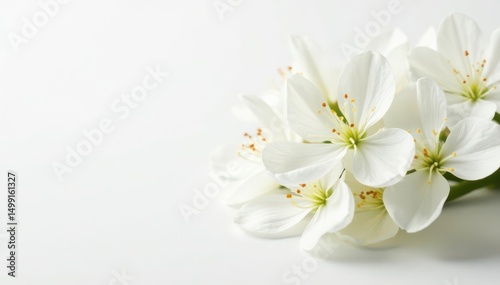 Obraz premium Delicate white flower blossoms on pure white backdrop, backdrop, light
