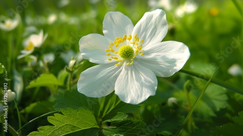 Fototapeta premium Delicate White Flower in a Lush Garden