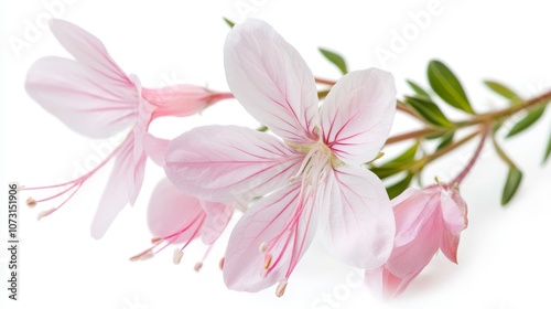 © Milaballe, Naklejka premium Delicate white flower with pink accents on a branch isolated on white background