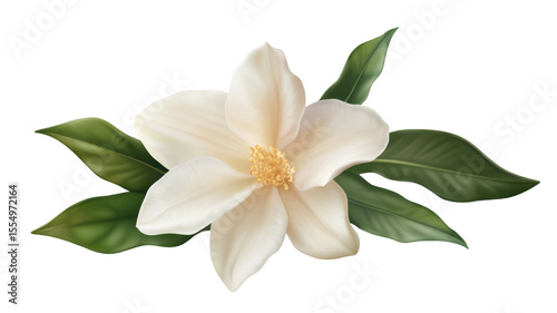 © PNG, Fototapeta premium Delicate white flower with soft petals and natural green stem isolated on white background
