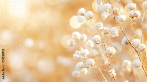 © nuupucca, Fototapeta premium Delicate white flowers against a soft golden background