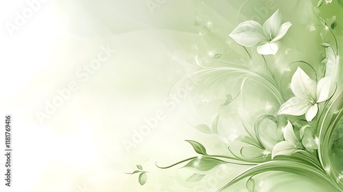 Fototapeta premium Delicate White Flowers and Green Abstract Floral Design
