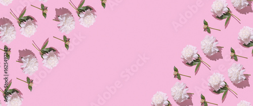 Fototapeta premium Delicate white flowers arranged artistically on a vibrant pink background for...