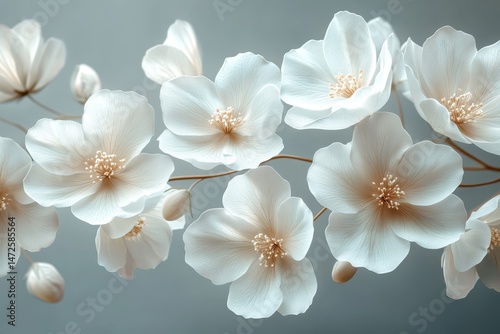 Fototapeta premium Delicate white flowers arranged gracefully on a soft background highlighting...