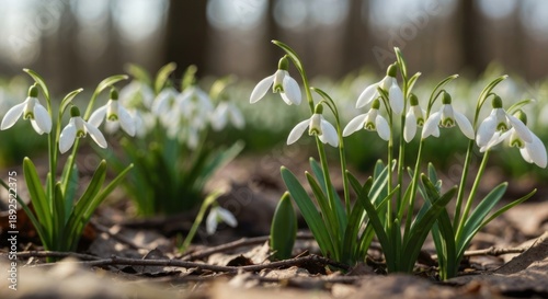 © Arifin, Obraz premium Delicate white flowers bloom amidst dried leaves in a sunlit forest