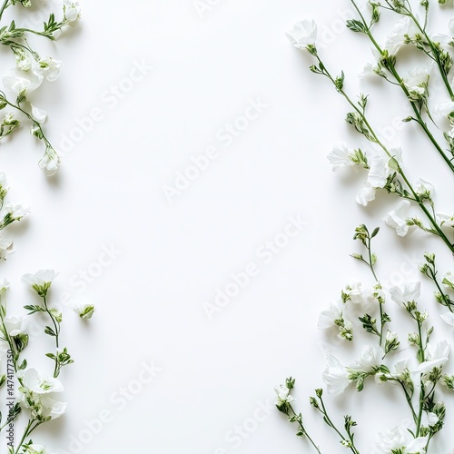 © Comben, Naklejka premium Delicate white flowers frame a blank space (10)